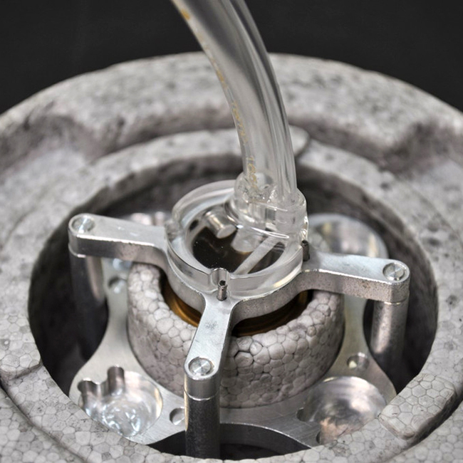 這款定制設(shè)計的乙烷冷凝器與FEI/Thermo Fisher的泡沫杜瓦瓶套裝中的Spider(EMS貨號71167-85)緊密配合。用戶正常放置Spider并插入冷凝器。用戶無需操作乙烷噴嘴,只需專注于液態(tài)乙烷的液位,用一只手控制乙烷流速,使整個過程更加簡便且符合人體工程學(xué)。此外,該冷凝器應(yīng)能減少乙烷氣體的浪費,并縮短將乙烷杯充滿液態(tài)乙烷所需的時間。